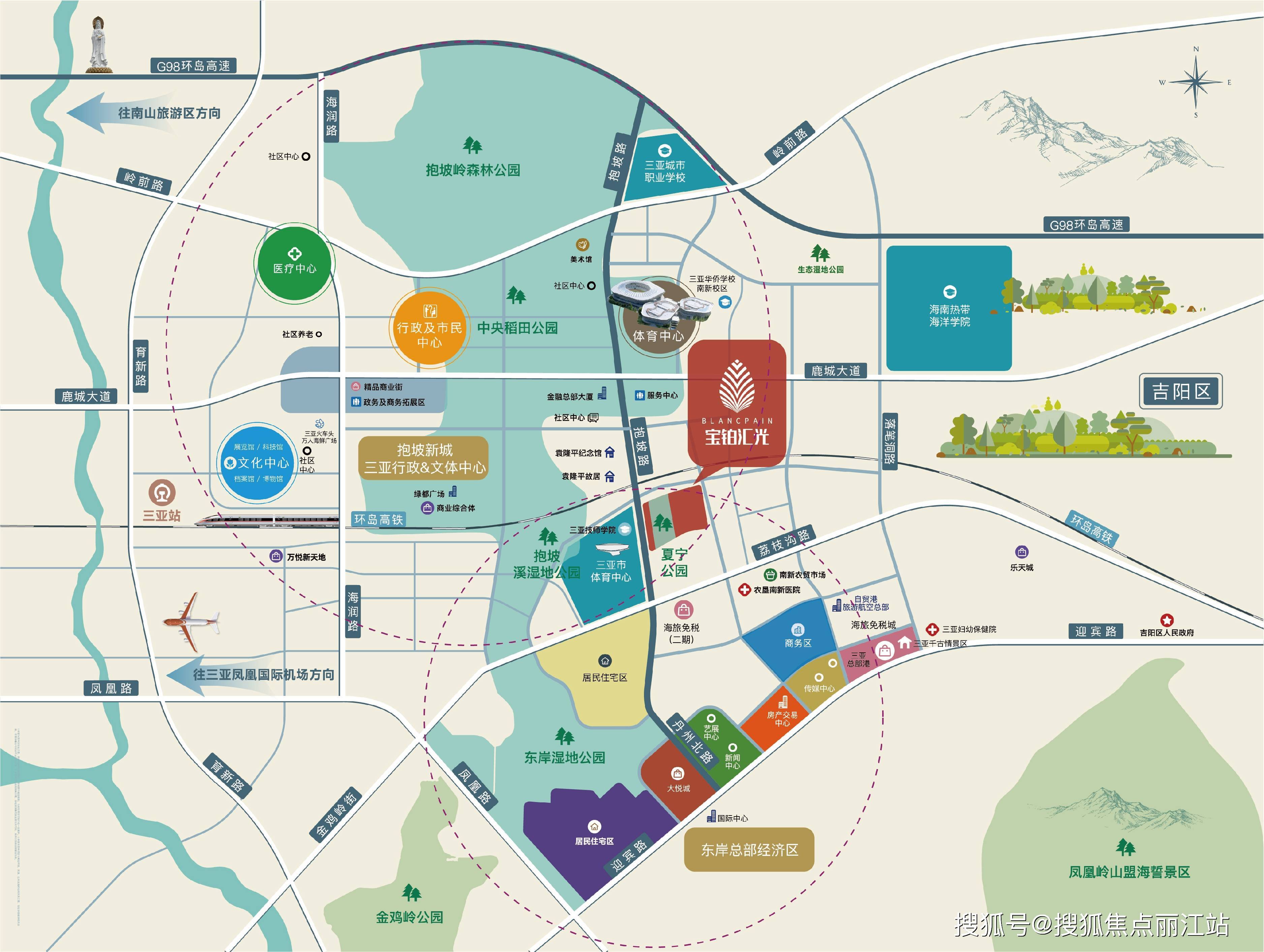 医疗配套:2 公里即达三亚市妇幼保健医院,十分钟内可达三甲医院三亚中心医院、三亚人民医院,距海棠湾的 301 医院海南分院约 20 公里。