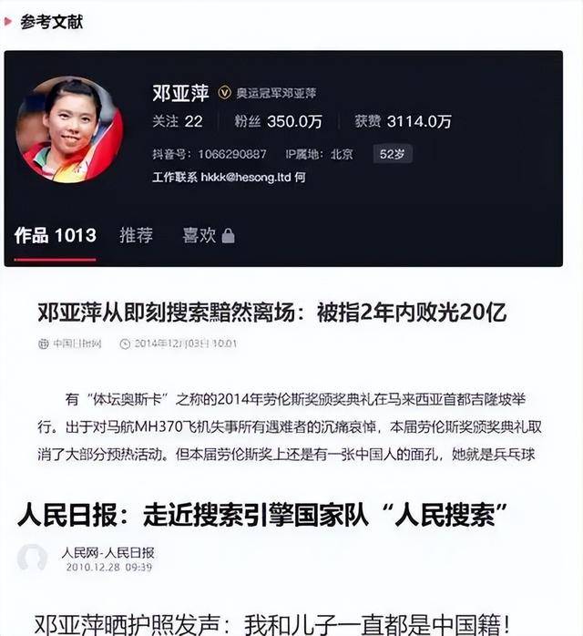 如此闪耀的事业经历,邓亚萍却被传出“涉嫌被带走,曝光了二十个亿,而且还改了国籍”。