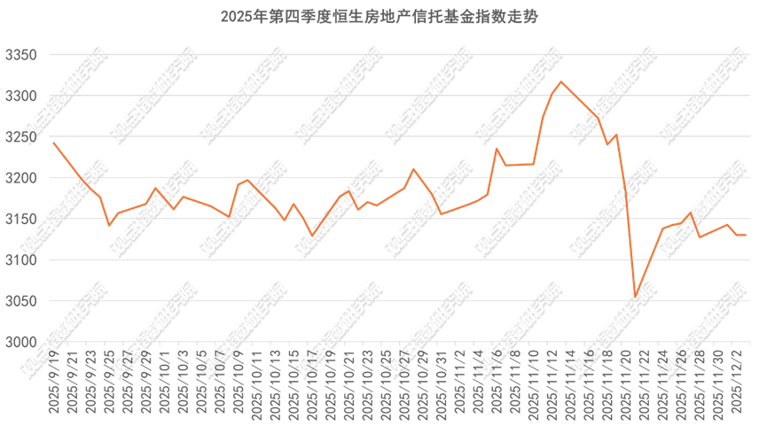 恒生房地产信托基金指数在期内呈现震荡回落的态势,整体围绕3050-3300点区间波动,四季度末小幅收跌。