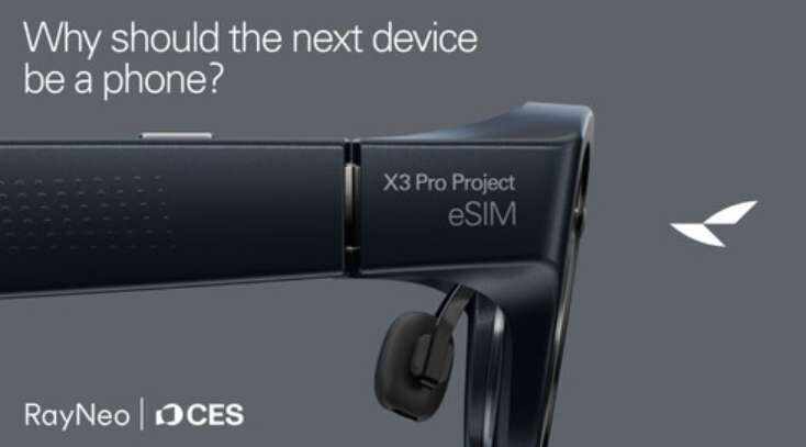 对于即将在CES 2026大会展出的RayNeo X3 Pro – Project eSIM,它的主要核心创新是内置eSIM(4G)连接功能,目标是将设备从对智能手机的依赖中解放出来,重新定义可穿戴智能设备的潜力。