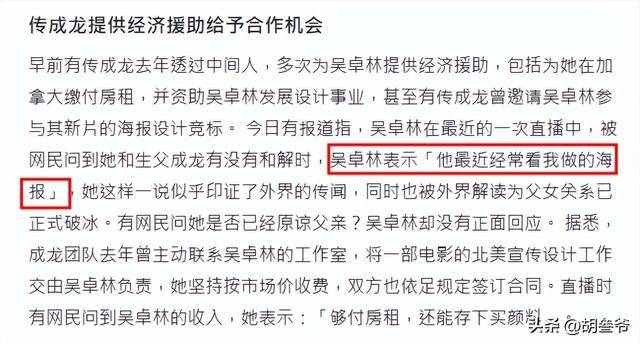 除了父子关系回暖,成龙的家庭生活也迎来了圆满,和女儿吴卓林的关系,也从疏离走到了破冰。