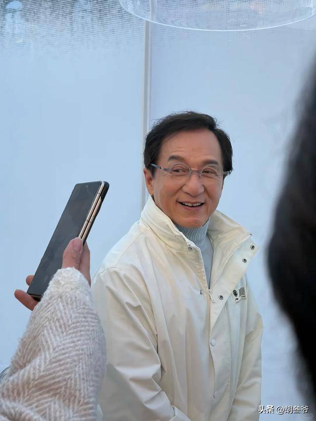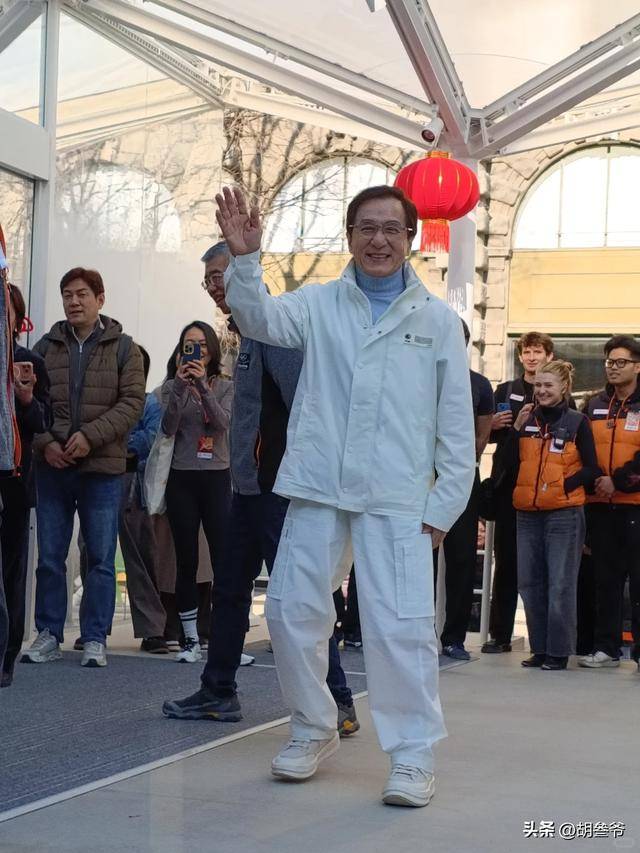 现场的外国工作人员围在一旁笑得合不拢嘴,成龙全程配合,还主动和大家挥手打招呼,一点巨星架子都没有。