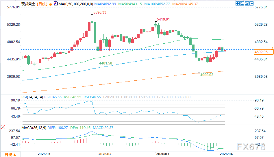 当市场处于趋势明确阶段时,两者同向强化,形成正反馈;一旦进入过渡区间(如当前),差异被迅速放大,表现为价格高频震荡与预期反复。4400—4500美元一线正成为这一竞争的焦点战场。